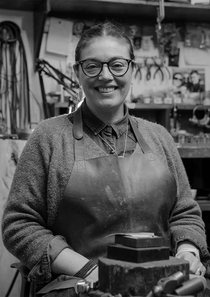 Pamela Anguita, luego de años dedicada a ser asistente social, sintió que estaba llamada a dominar la dureza de la plata en objetos que expresaran otros mundos, y forjó su propio emprendimiento de orfebre en Temuco, a punta de autodisciplina y creatividad personal.