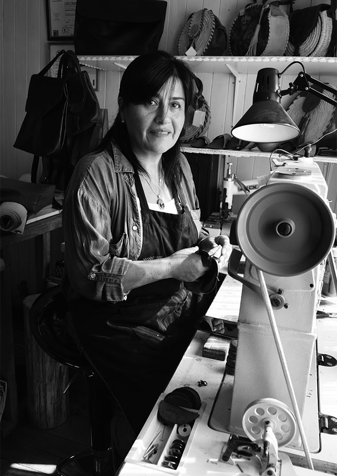 Desde el año 2006, Ana Paula Navarro invierte su talento natural y su formación en telar, cuero, tejido de ñocha y yute en las piezas de su emprendimiento. Desde la comuna de Cañete (Bíobio, Chile) partió de manera autodidacta, y hoy se encarga personalmente del diseño y armado de cada pieza, que es única y hecha a mano en conjunto con 3 artesanas.