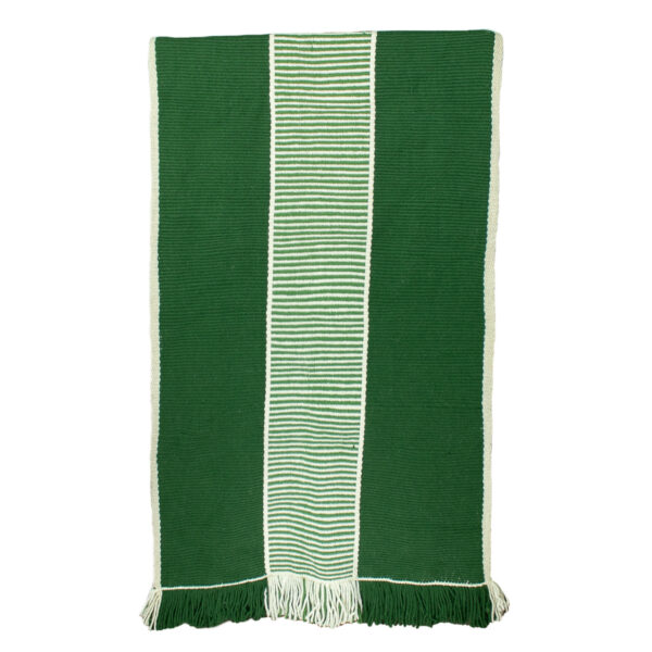 Alfombra a telar de dos colores, verde y crudo.