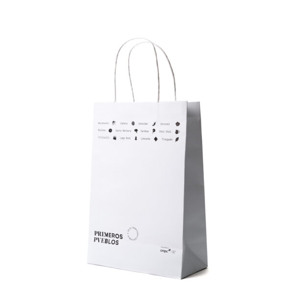 Bolsa de papel mediana de la tienda Primeros Pueblos.