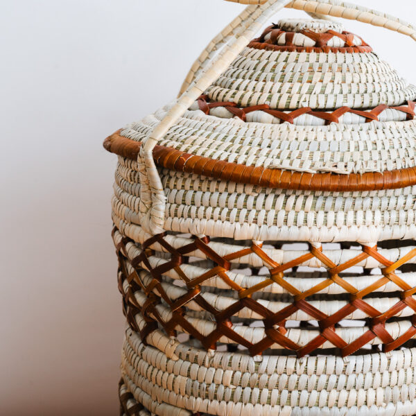 Canasto de ñocha modelo Inés, hecho de fibra natural de ñocha.