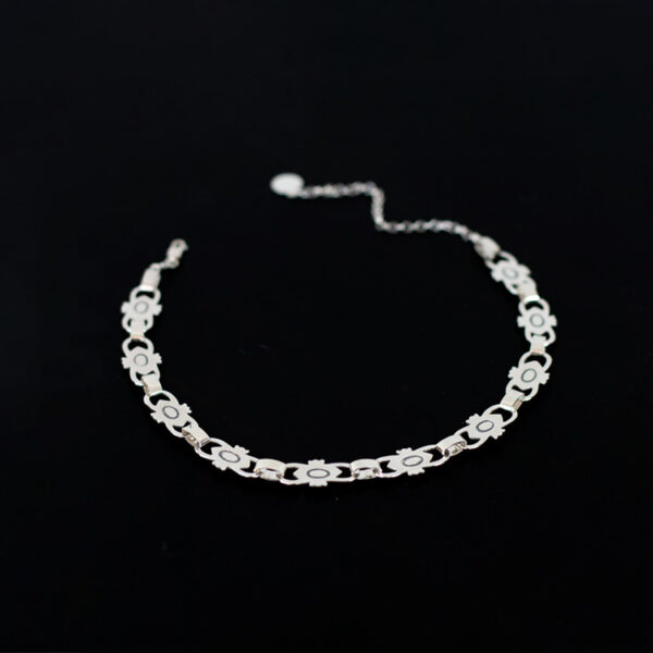 El diseño de los eslabones de este collar es un rescate de joyas antiguas mapuches presentes en los llamados «Kilkai». Estos eslabones fueron trabajados en forma maximalista para representar la fortaleza de la unión.