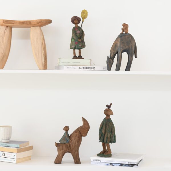 Escultura de madera Hombre con pajarito.