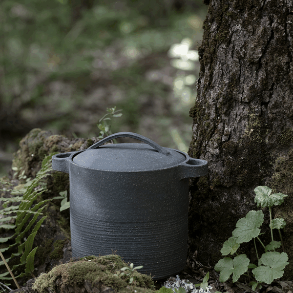 Hielera u olla alta con tapa. Hecha con técnica de greda con pasta negra-