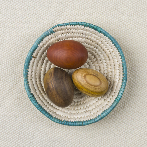 Huevo madera pulido hecho a mano con maderas rescatadas, secadas.