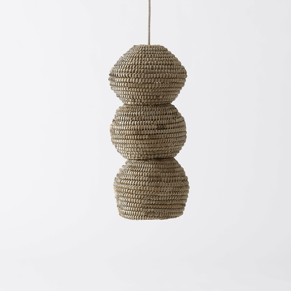 Lámpara Triple de manila (pita) natural tejida con punto yagán.