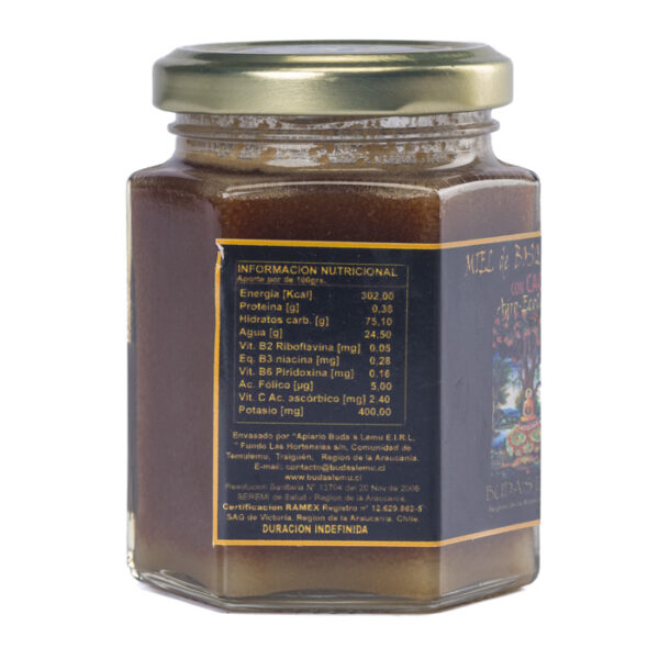 Deliciosa mezcla de Mieles Budaslemu -miel cruda de bosque nativo y mieles gourmet- que son mezcladas con productos endémicos como Maqui (Aristotelia chilensis), Jengibre, Cacao, Merkén y Cúrcuma.
