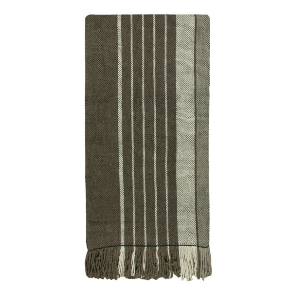 Piecera telar de lana natural, café y gris.