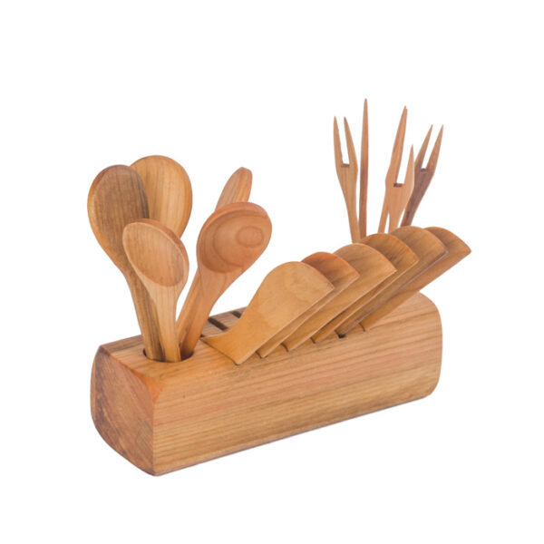 Set de cubiertos de madera para aperitivo.